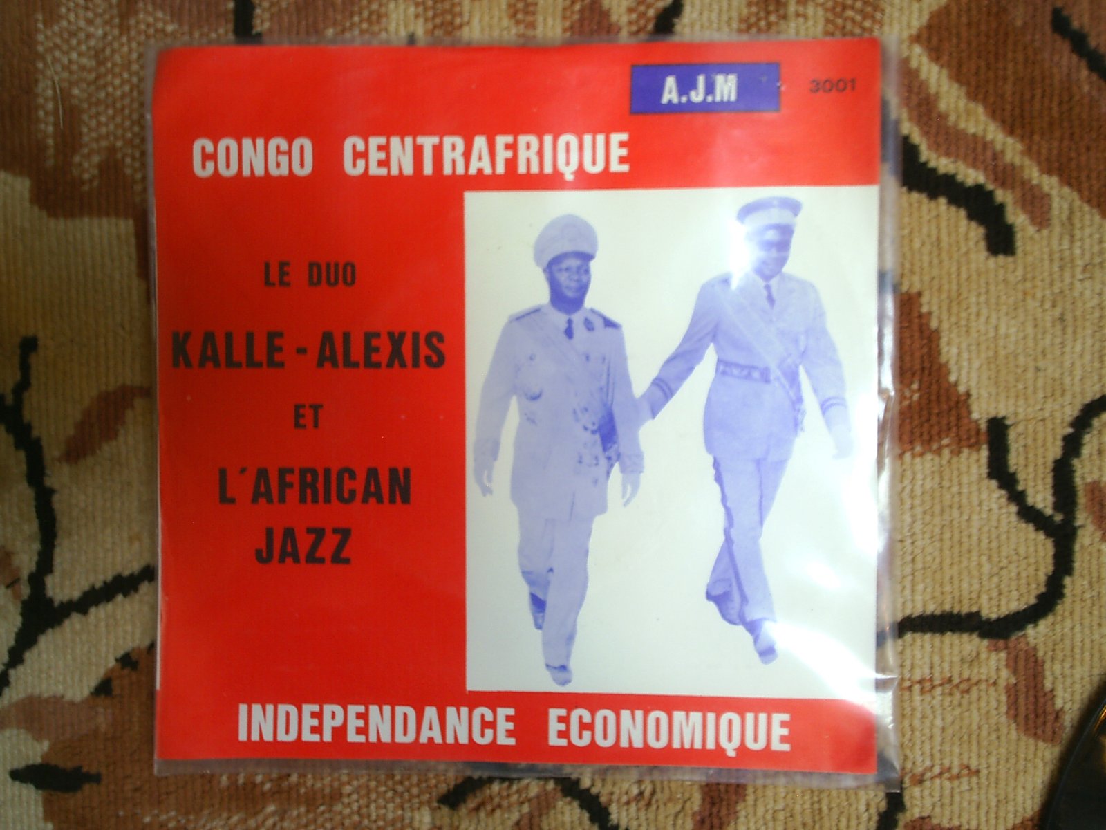 Since Mbokamosika’s article ‘Le Grand Kalle avait quand même chanté Mobutu !’ it is known that Joseph Kabasele got involved with propaganda, for Mobutu. Around 1966 he released two songs for this president’s regime: ‘Indépendance Economique’ and ‘Congo Centrafrique’, two themes that were part of his nationalization discourse. Included is the cover of the 45rpm record that was released on Kabasele’s own Surboum African Jazz label – the two songs are available for streaming on the Mbokamosika link. Joseph Kabasele himself and Alex Mayukuta (Alexis), one of the singers of l’African Jazz in their final period (1964 – 1969), were in charge of the vocals.